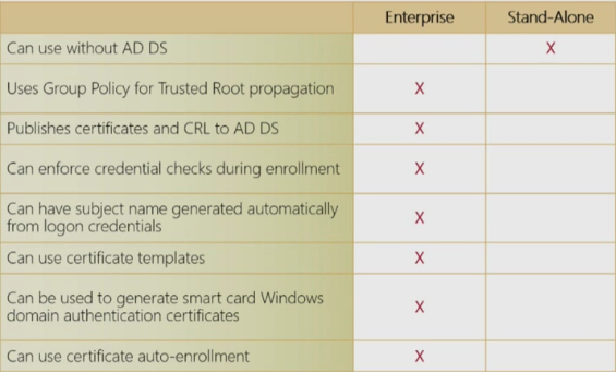 - Internal CAs are less expensive and provide more administrative options, but the issued certificates are not trusted by external clients.
