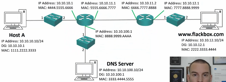 - Host A (10.10.10.10/24) wants to send a packet to FQDN www.flackbox.com, but it does not know the destination IP address.