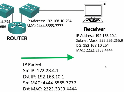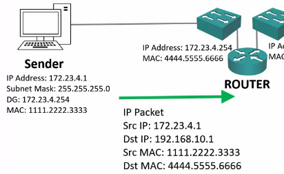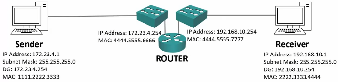 - When the Sender and Receiver are pm different IP subnets, the traffic must be forwarded by a router.