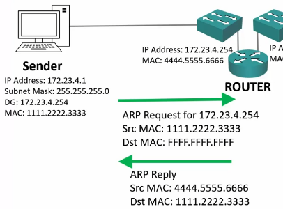 - The Sender knows it must send the request to its Default Gateway in order to discover the Receiver’s location since it is on a different network.