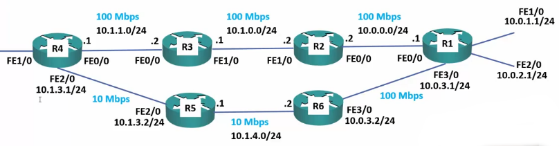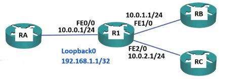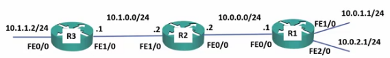 10.1.1.0/24 Connected FE0/0 10.1.0.0/24 Connected FE1/0 10.0.0.0/24 10.1.0.2 FE1/0 10.0.1.0/24 10.1.0.2 FE1/0 10.0.2.0/24 10.1.0.2 FE1/0