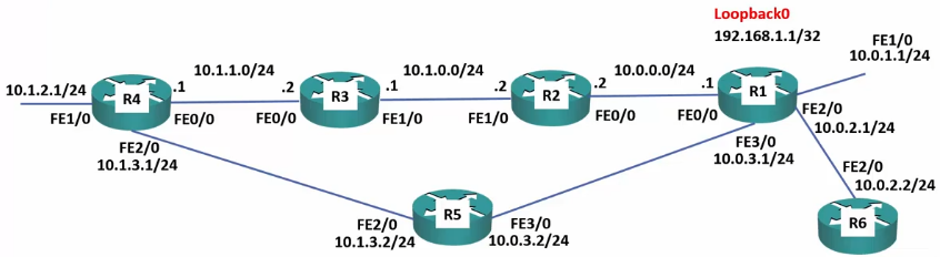 R1#conf t int loopback 0 ip address 192.168.0.1 255.255.255.255 end