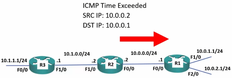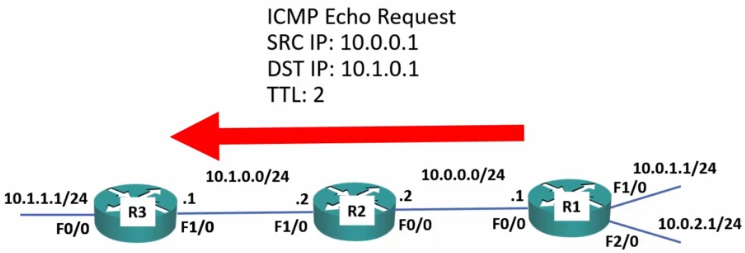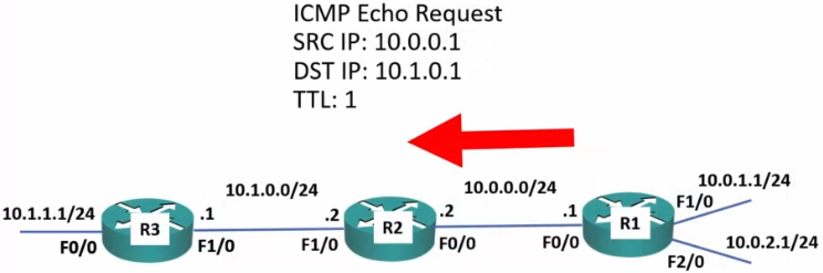 - Each time a packet is passed, it decrements the TTL by one.