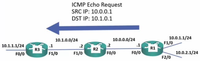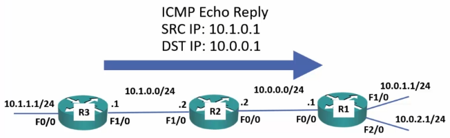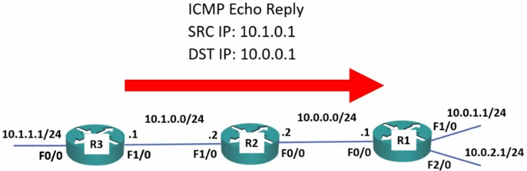 - A ping from R1 to 10.1.2.10 will succeed because R4 has a route to 10.0.0.1