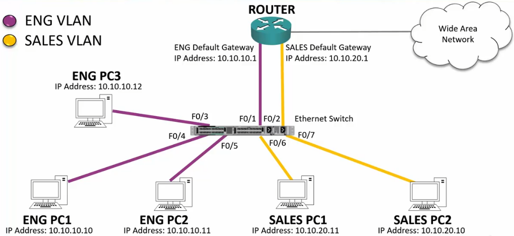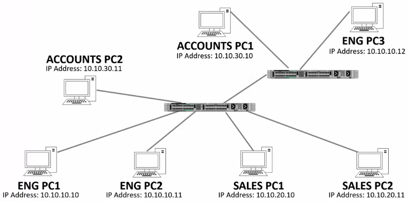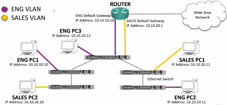 - Switches only allow traffic within the same VLAN