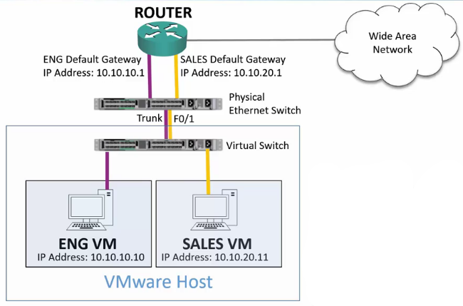 - In this case, we need to trunk the VLANS down to the host.
