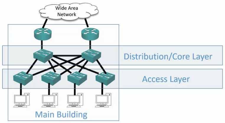 - In these cases, a Collapsed Distribution and Core layer is used, where the Distribution and Core layer functions are performed on the same hardware device.
