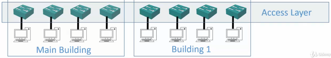 - Access Layer switches uplink to Distribution Layer switches