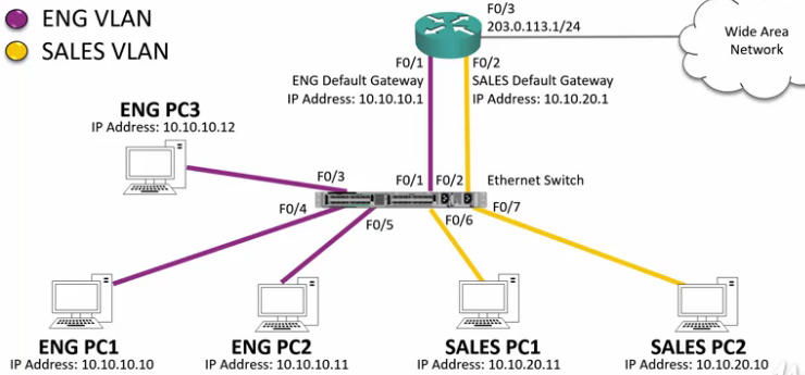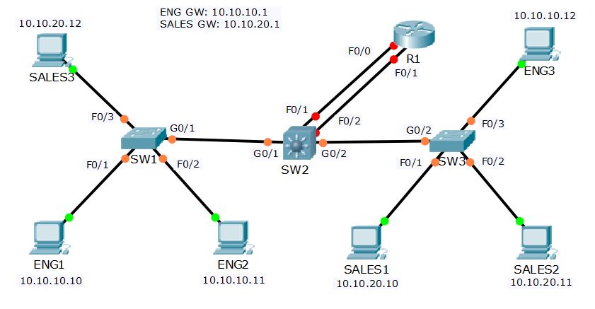 - Sales hosts are in IP subnet 10.10..20.0/24 and VLAN 20