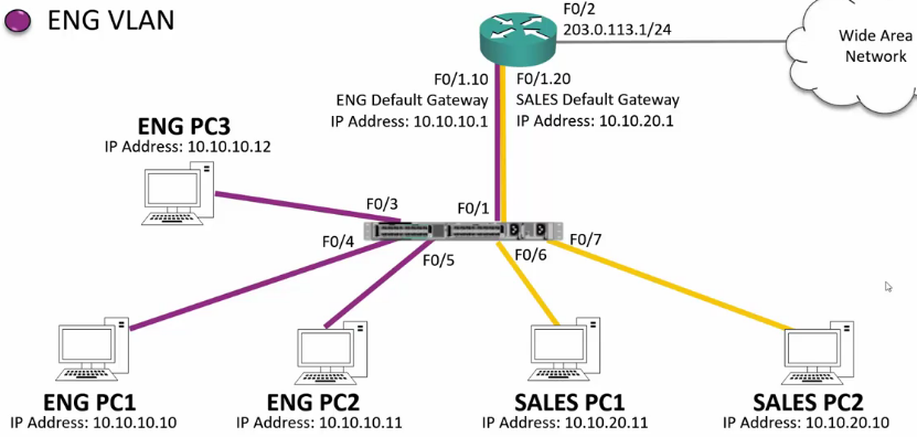 - Engineering hosts are in IP subnet 10.10.10.0/24 and VLAN 10