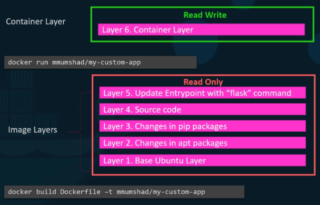 - When a container is created, it uses the Image layers, then creates a new ‘container’ layer on top of them.