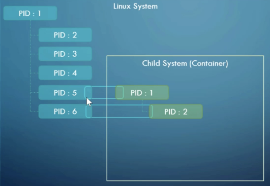 - Each process id namespace has it’s own set of processes and each can have it’s own root process with a process ID of 1.