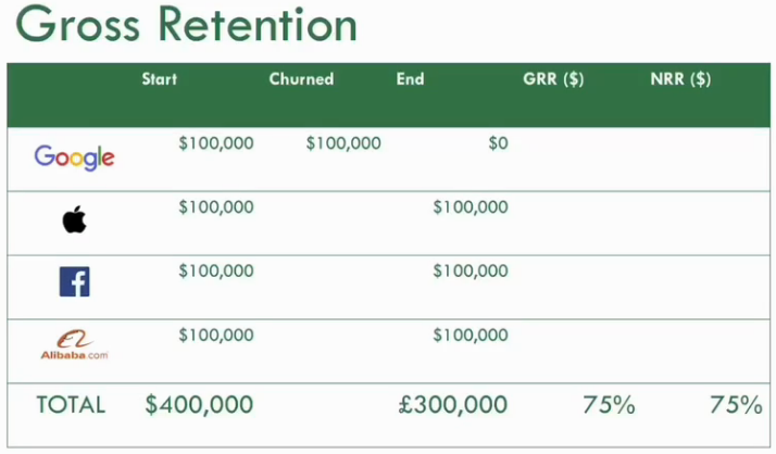 - Gross Revenue Retention is the retained revenue over the subscribed revenue at the start of the period