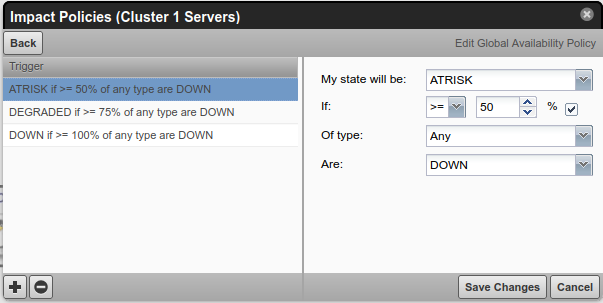 - Cluster 1 Servers > Right Click > Edit Impact Policies