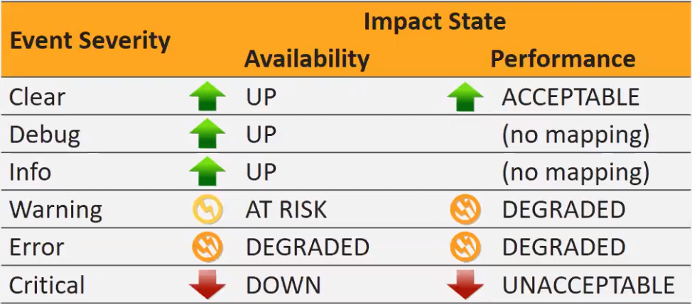 - The State of the impacted element is derive3d from the Event Severity
