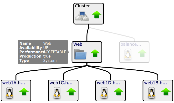 - When an event occurs on a Member, an event will also be generated against the Service’s Availability or Performance.