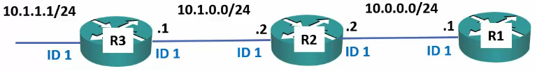 - R2 will form adjacencies with R1 and R3 even though the Process IDs do not match