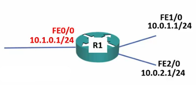 - In the opposite direction: 10.0.1.0 network (R1 FE1/0) to