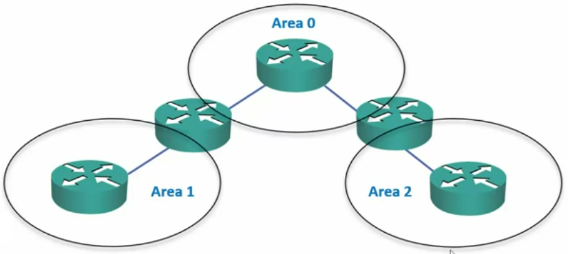 - When multiple areas are in use, each router has individual routes for each IP subnet in its own area, and summary routes to other areas which go via an ABR.