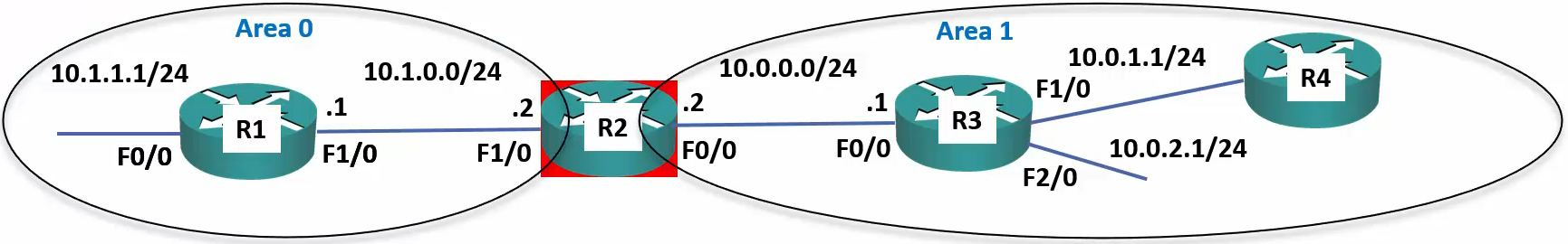 - R3 and R4 are Backbone Routers in Area 0