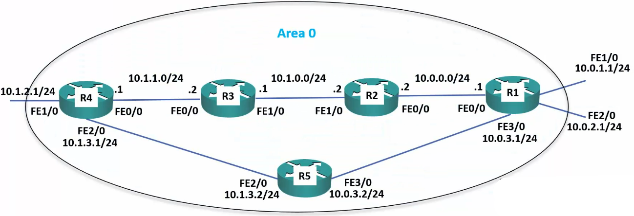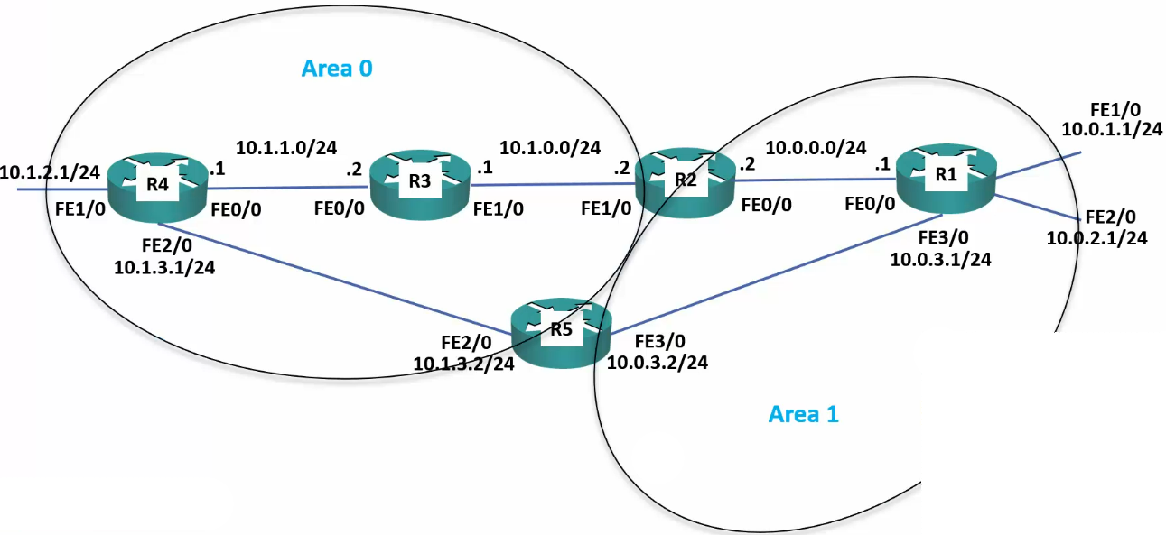 - R2 and R5 are ABRs (Area Boarder Routers)
