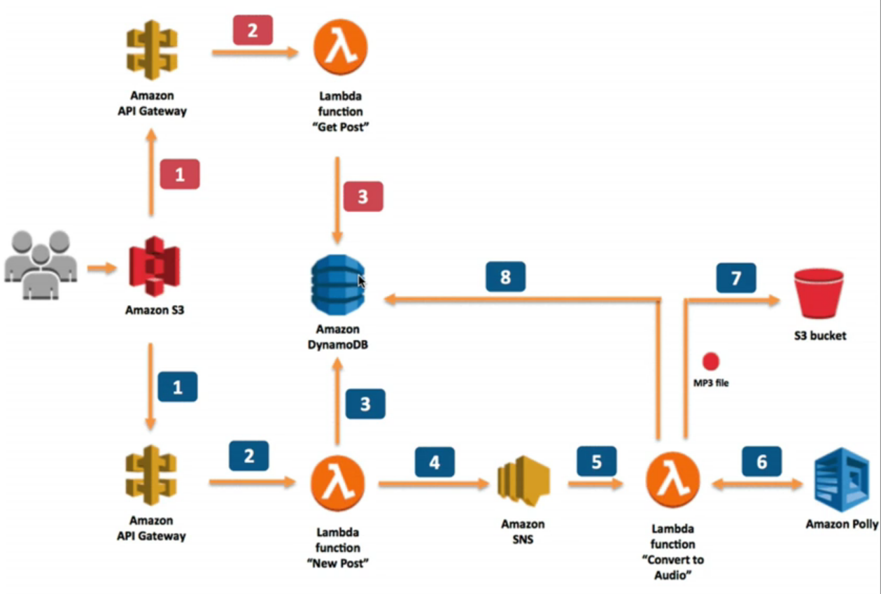 Requires API Gateway and Cross Origin Resource Sharing* Part of the exam!